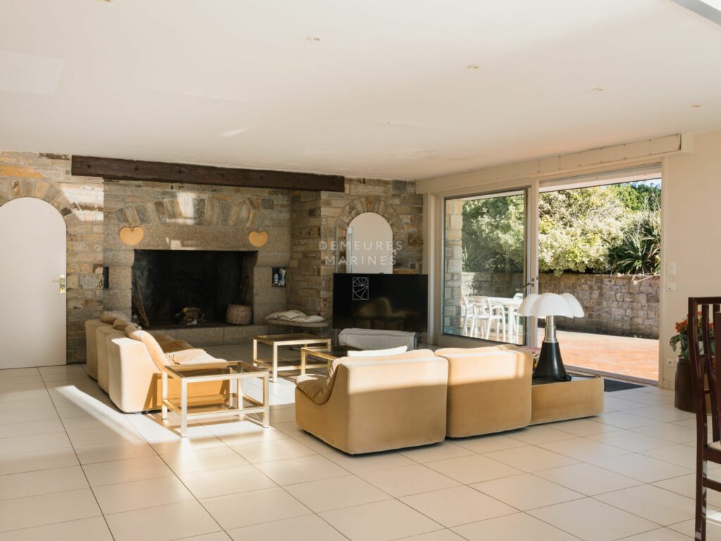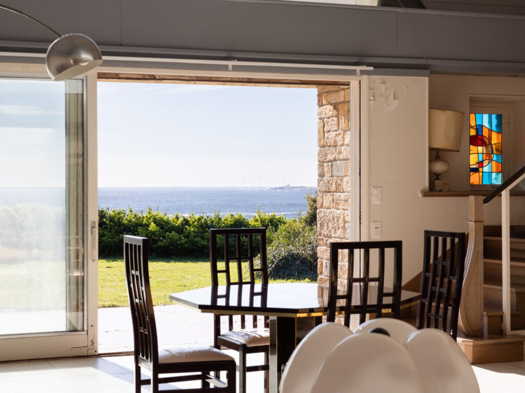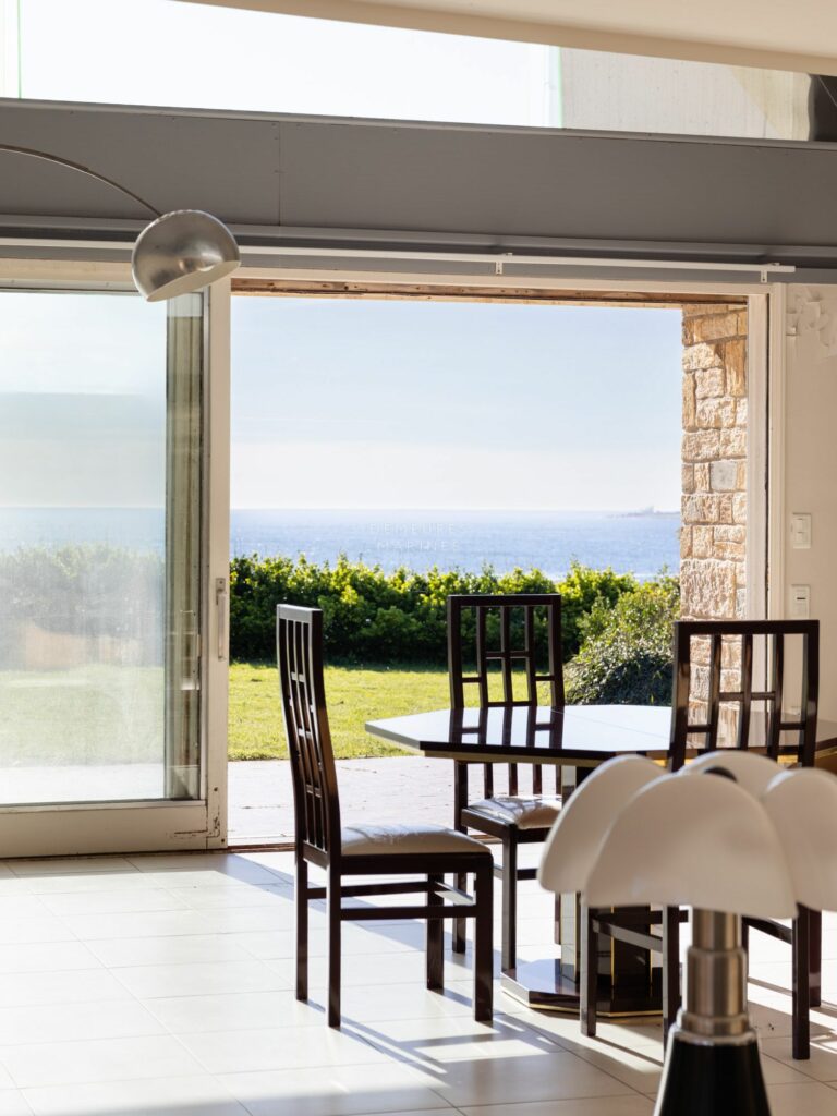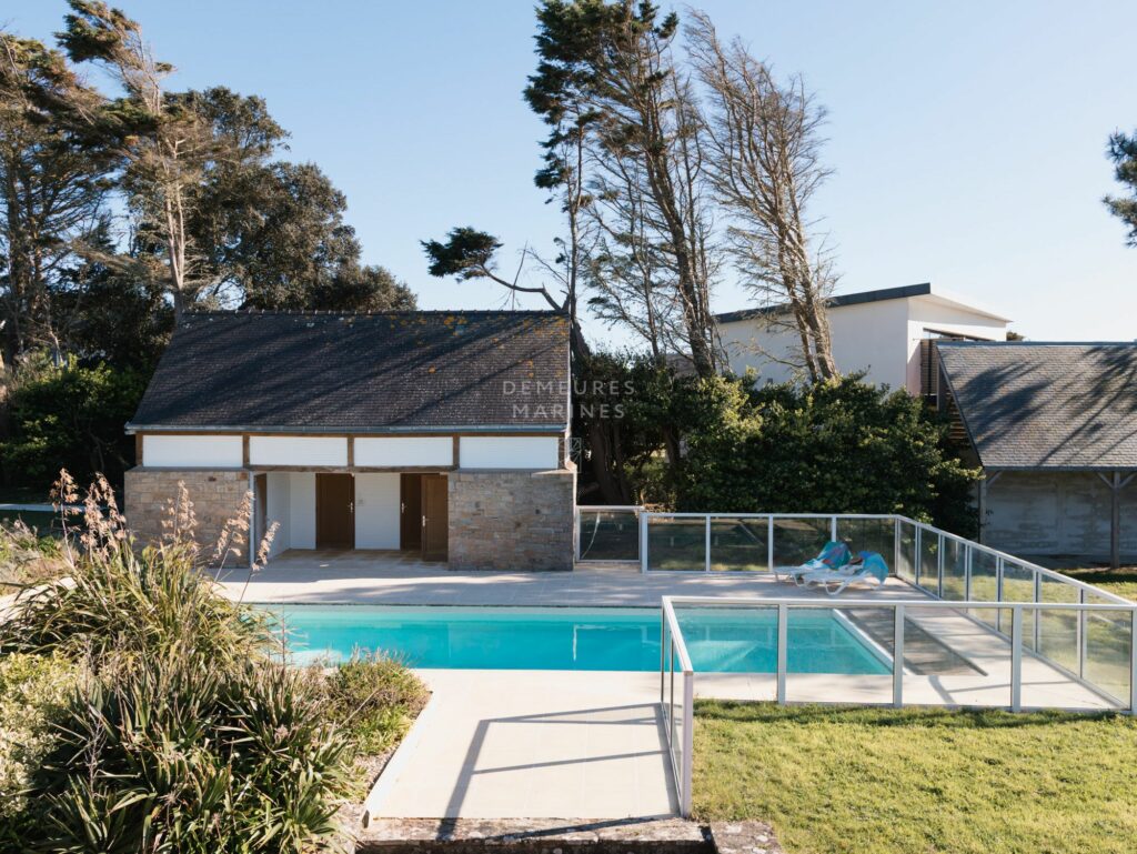 Face à l’océan, cette propriété familiale d’environ 388 m2, dont 331 M2 pour la maison principale, se déploie sur un terrain de plus de 4 000 m2. Ardoise et granit dessinent une architecture aux lignes intemporelles, pensée pour dialoguer avec le paysage. Ses volumes généreux et ses larges ouvertures laissent entrer la lumière et guident instinctivement les regards vers l’horizon.