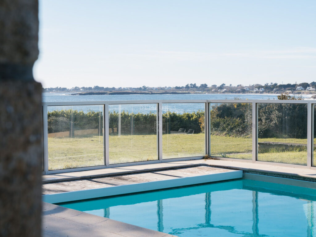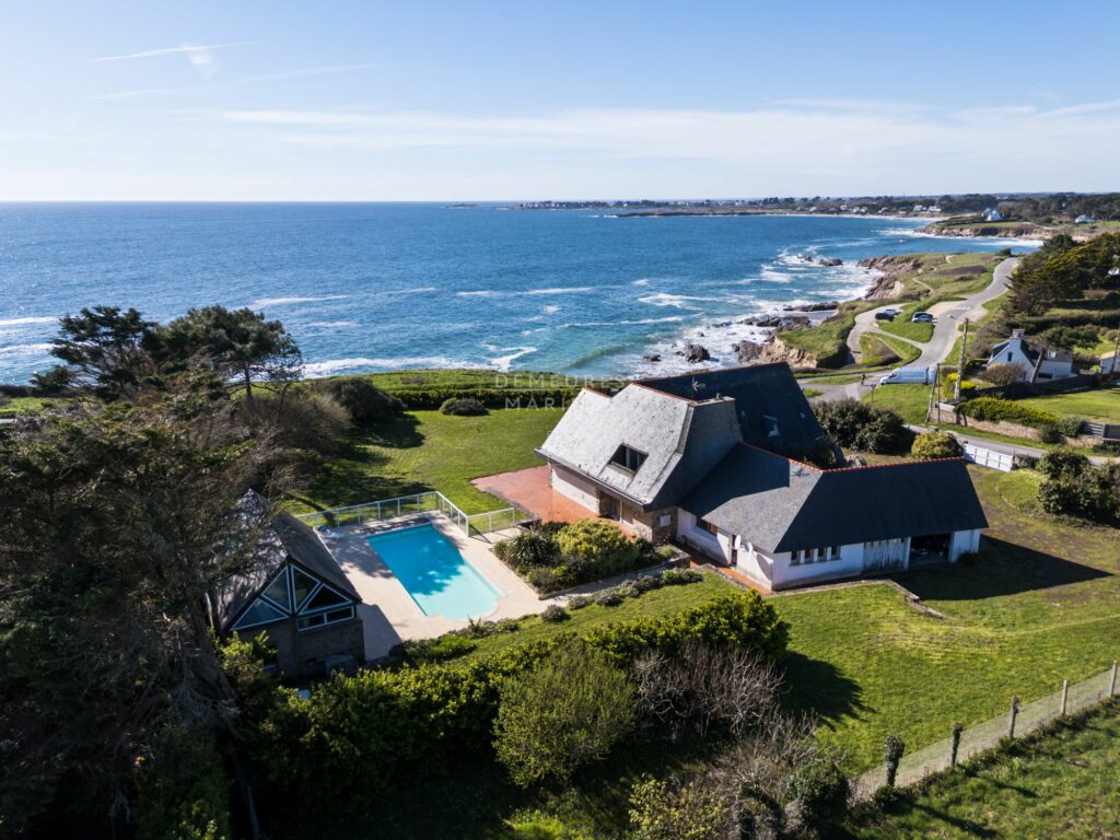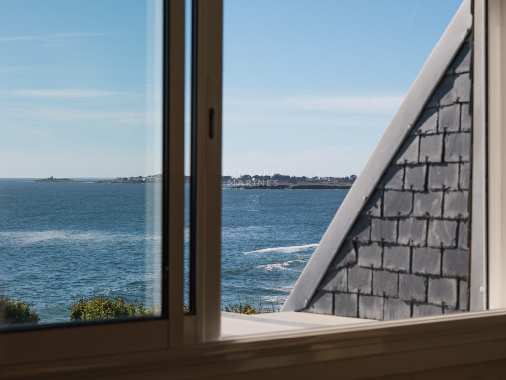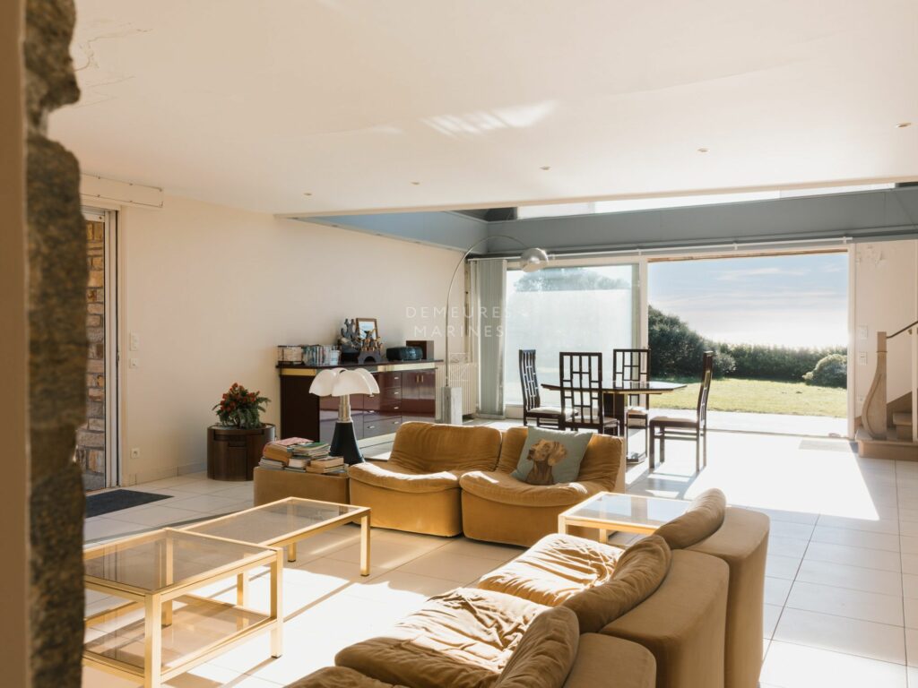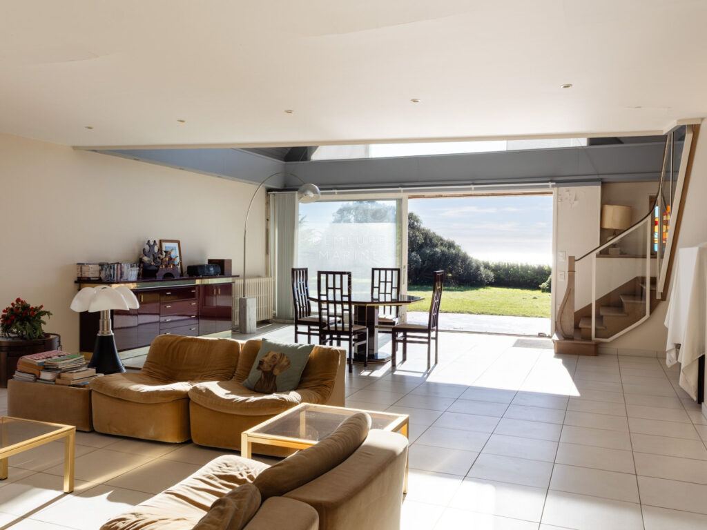 Face à l’océan, cette propriété familiale d’environ 388 m2, dont 331 M2 pour la maison principale, se déploie sur un terrain de plus de 4 000 m2. Ardoise et granit dessinent une architecture aux lignes intemporelles, pensée pour dialoguer avec le paysage. Ses volumes généreux et ses larges ouvertures laissent entrer la lumière et guident instinctivement les regards vers l’horizon.