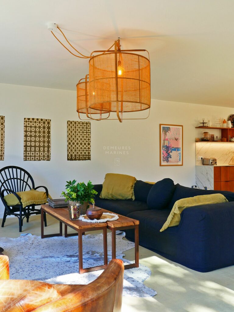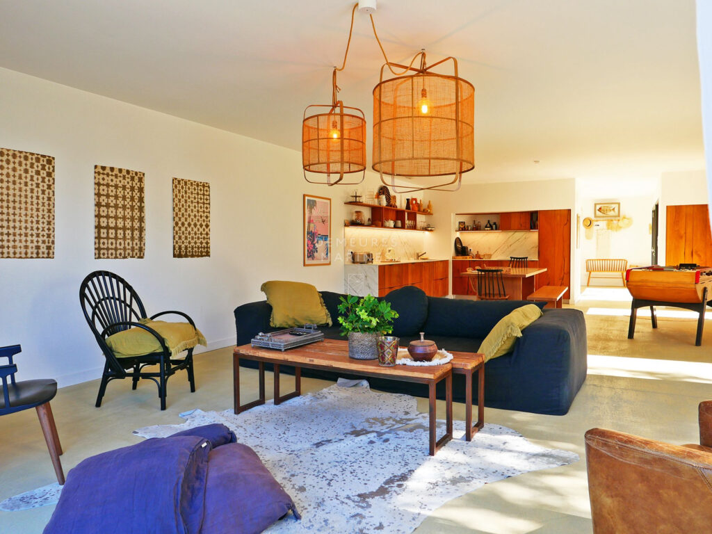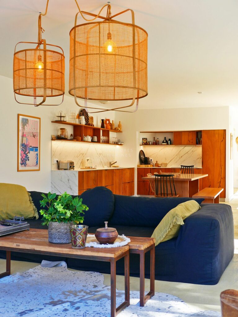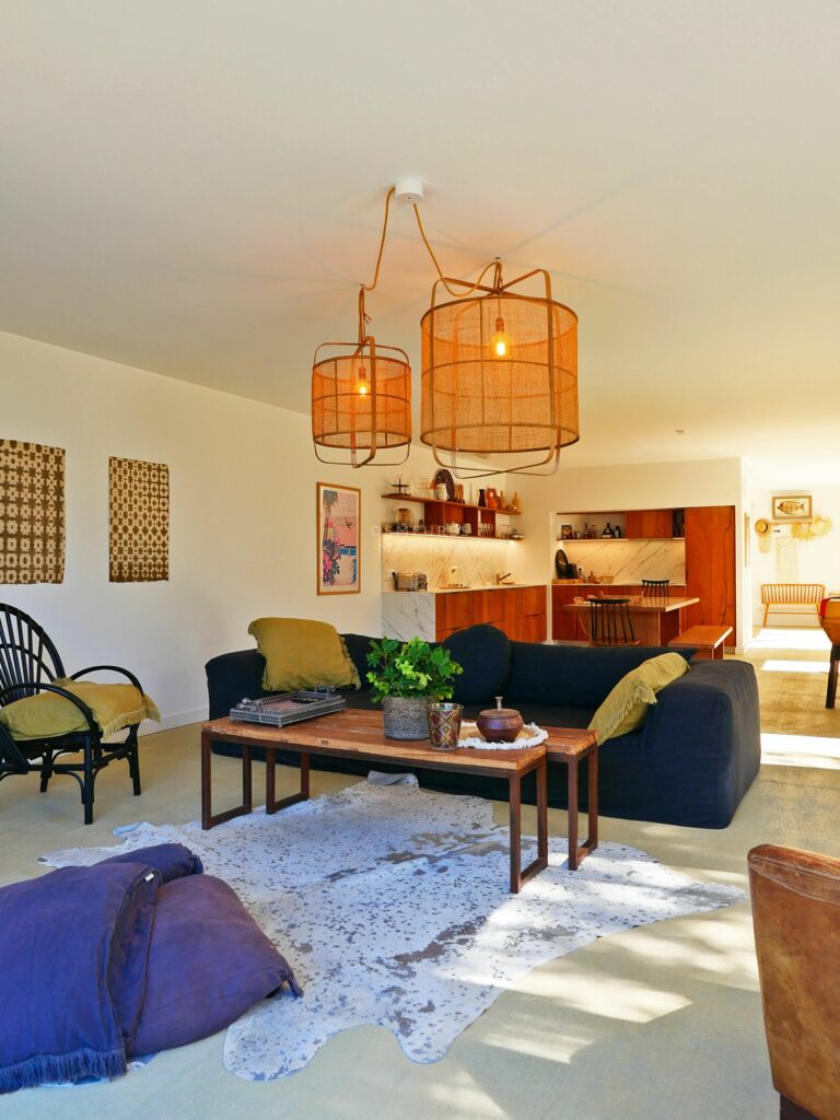Pensée avec un goût raffiné, cette lumineuse demeure familiale révèle une ambiance douce et apaisante. Subtil équilibre de matières brutes et de style bohème, son béton sablé au sol dialogue avec une palette de teintes naturelles.