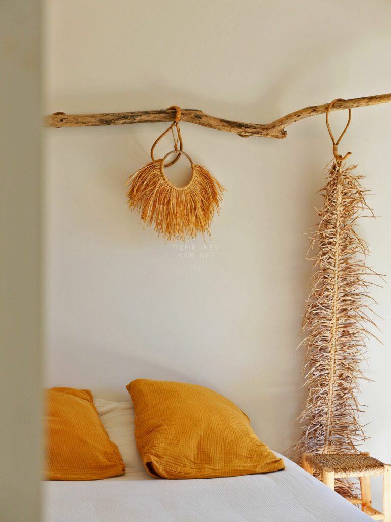 J’aime l’idée de vivre pieds nus sur ce béton sablé qui évoque, à chaque pas, la douceur de la plage. C’est une maison qui respire au rythme de l’île, où l’on retrouve le luxe de la simplicité.