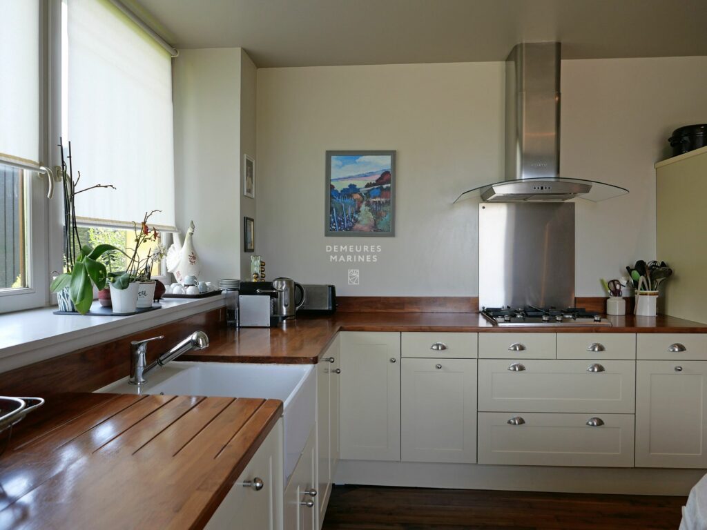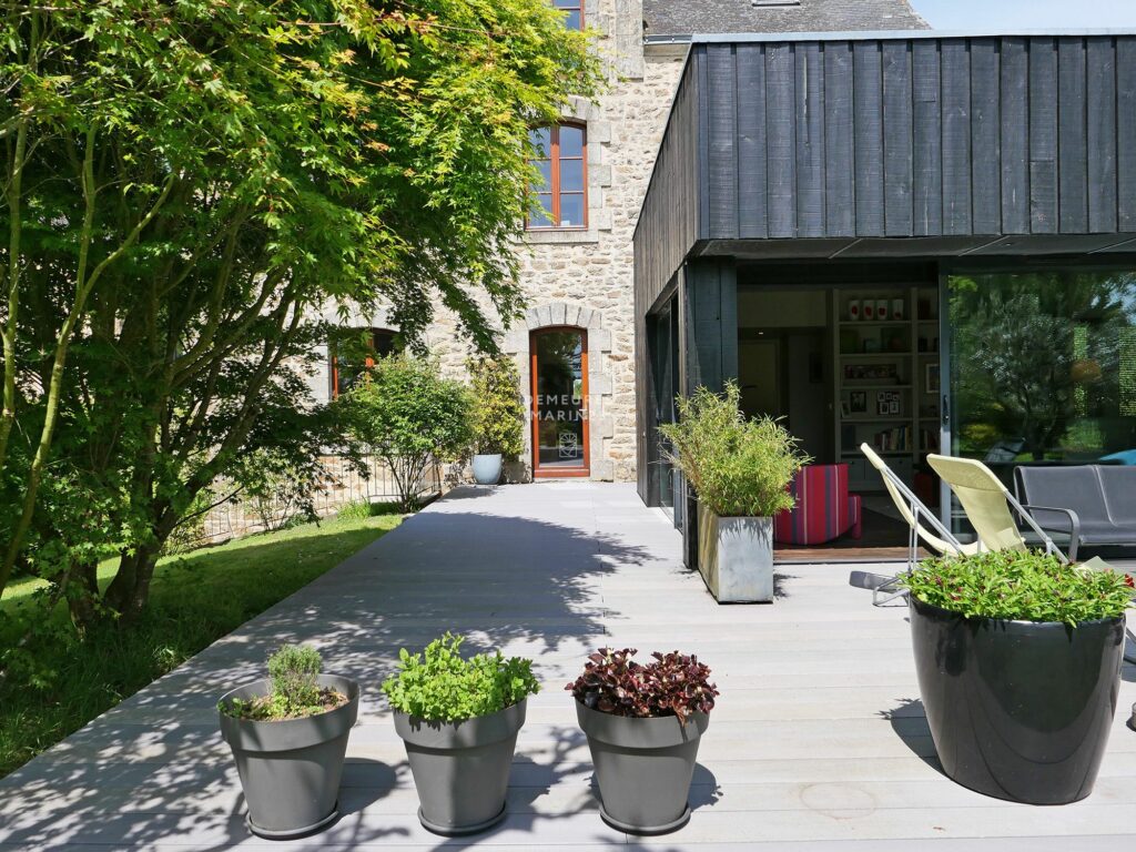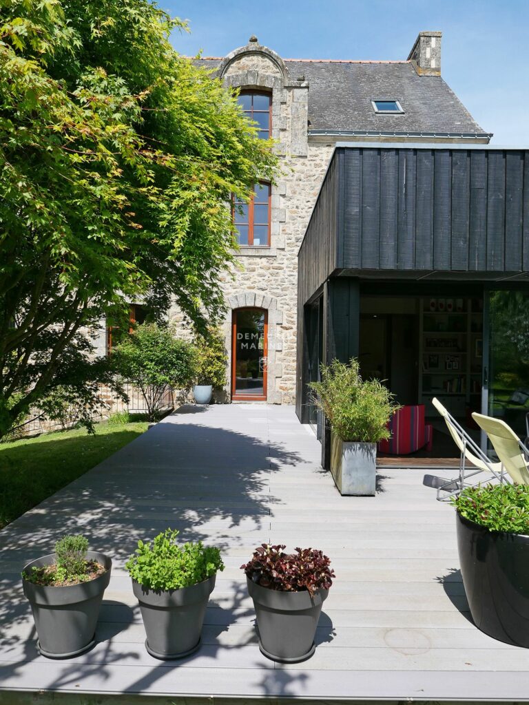 Demeures Marines vous dévoile en exclusivité « Les Hortensias », une demeure de charme située dans un petit hameau entre Vannes et Sainte-Anne-d’Auray. À seulement 10 minutes du centre de Vannes, vous découvrirez un écrin de verdure aux mille et une fleurs où règne une précieuse quiétude. Cette maison de famille en pierre a fait l’objet d’une belle rénovation avec la création d’une extension qui apporte une énergie contemporaine à l’ensemble.