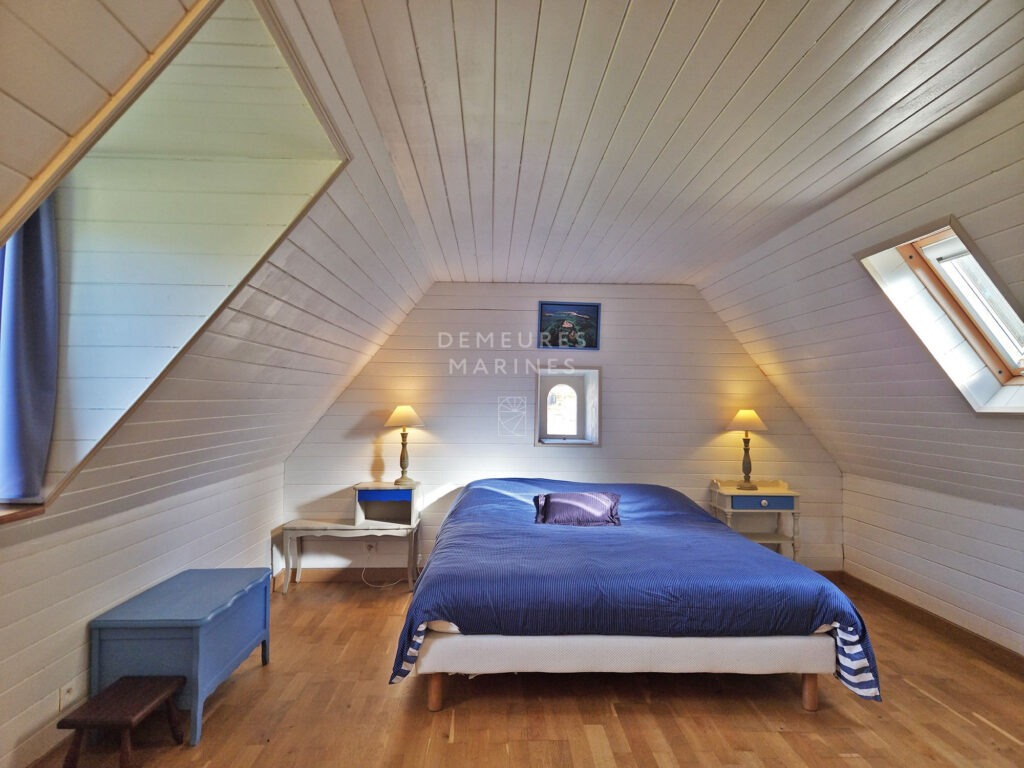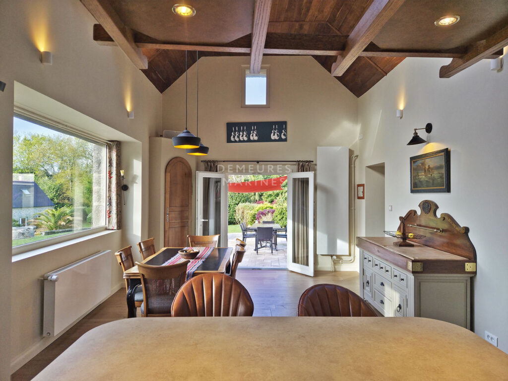 Demeures Marines vous présente « Marjolaine », un bel ensemble en pierre datant du XIXème siècle situé sur la route des Châteaux à Plomelin, au bord des rives de l’Odet. Au cœur d’un site naturel exceptionnel, préservé et protégé, vous découvrirez un véritable havre de paix d’un hectare. Cet ensemble en pierre, rénové avec soin, d’environ 325M2, présente une longère de 150 M2 et deux dépendances en pierre de 100 M2 et 75 M2.
