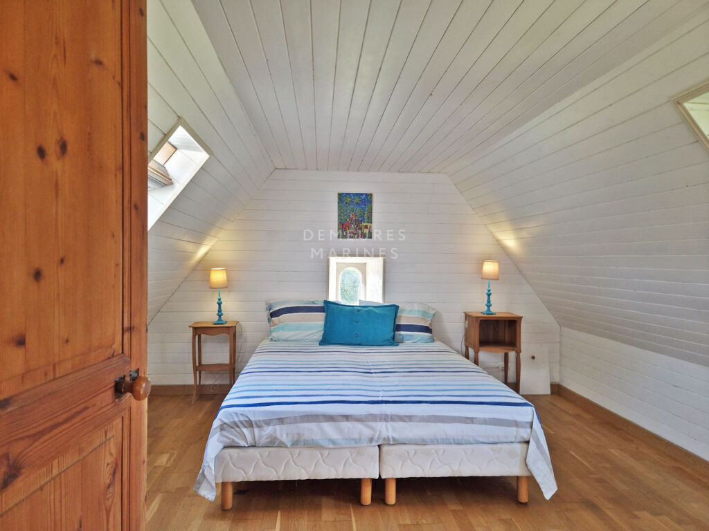 L’espace nuit, situé à l’étage abrite deux grandes chambres mansardées et une salle d’eau, dans lesquelles on se sent bien, tout simplement.