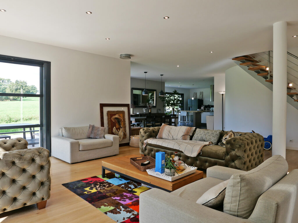 Un espace buanderie/arrière-cuisine, directement relié à la pièce de vie et accessible depuis le garage, vient parfaire ce niveau. S’y ajoute un bureau, pouvant également faire office de chambre, offrant un espace confortable et aisément accessible.