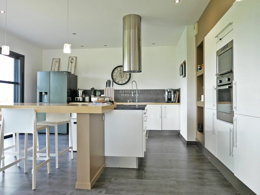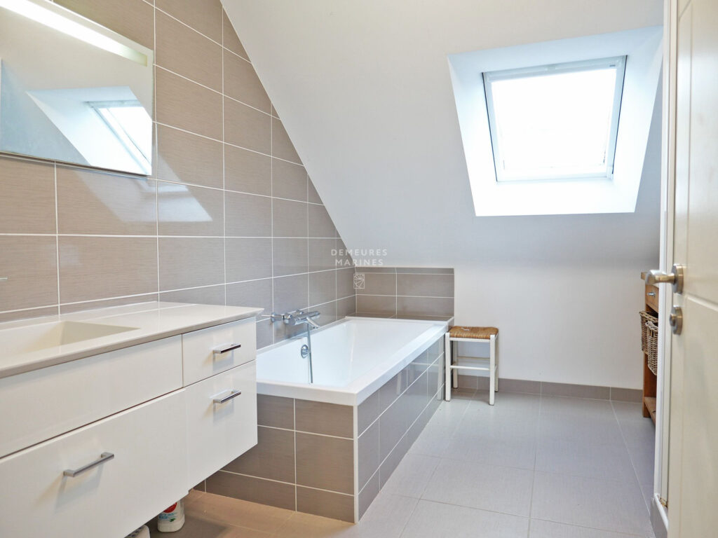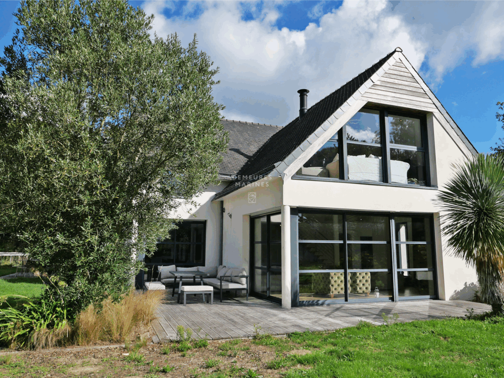 Demeures Marines vous présente en exclusivité, « Zoé », magnifique maison de 2007 d’une surface habitable de 230 m², située dans un cadre paisible et recherché, au cœur du Golfe du Morbihan à Baden. Implantée sur un terrain de 1 460 m², elle bénéficie d’une exposition sud-ouest qui inonde chaque pièce de lumière naturelle tout au long de la journée. Cette maison vous offre un confort moderne et une qualité de vie exceptionnelle.