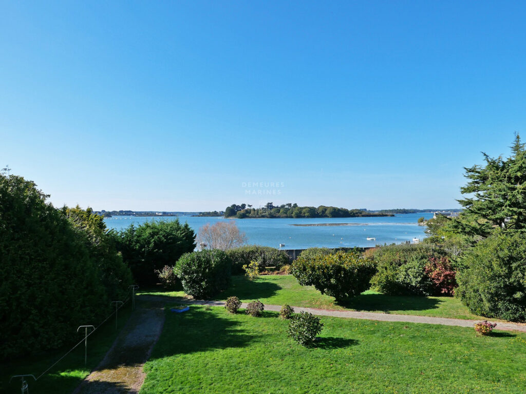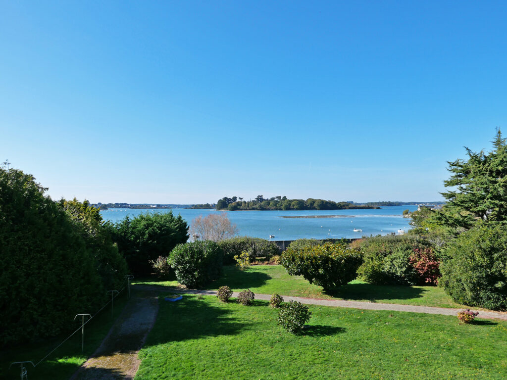 Cette lumineuse demeure typique de son époque est exposée plein ouest et offre une vie de plain-pied au calme grâce à sa pièce de vie avec cheminée et deux belles chambres, toutes deux desservies par une coursive offrant la vue sur la ria en fil conducteur. Une cuisine, une salle de bains avec baignoire et une salle de douche complètent ce niveau d’environ 135m2.