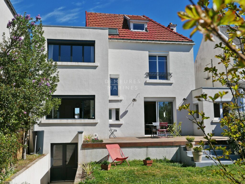 Demeures Marines vous présente « Faustine », une élégante demeure des années 30 située dans le très prisé quartier Albert 1er, à Vannes. À quelques pas du port et de l’intramuros, cette maison raconte une histoire douce, celle d’un lieu qui a su traverser le temps avec grâce, aujourd’hui réinterprété avec justesse à travers une rénovation soignée et une extension contemporaine réalisées en 2020. Elle incarne l’élégance vannetaise et charmera les amoureux d’architecture.