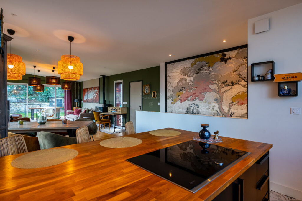 L’ensemble se compose d’une maison principale de 146 m2 et d’une seconde maison de 52 m2. La rénovation complète de 2019, réalisée avec soin, a su créer une atmosphère à la fois chaleureuse et contemporaine.