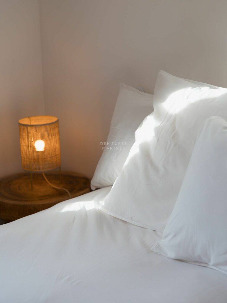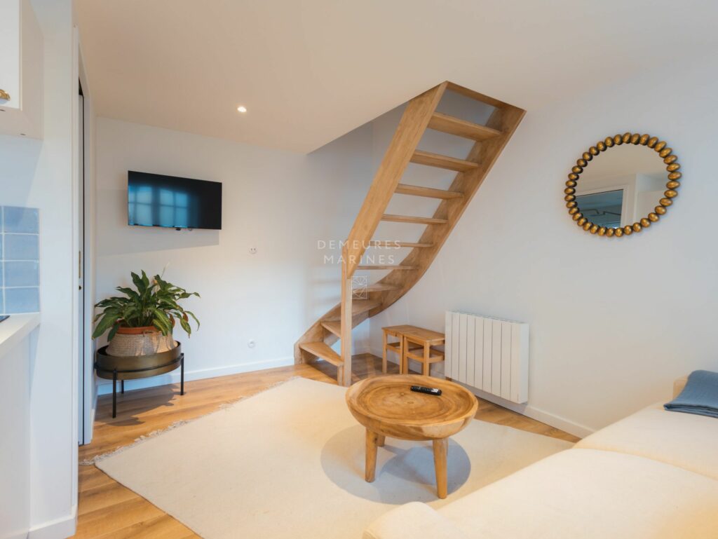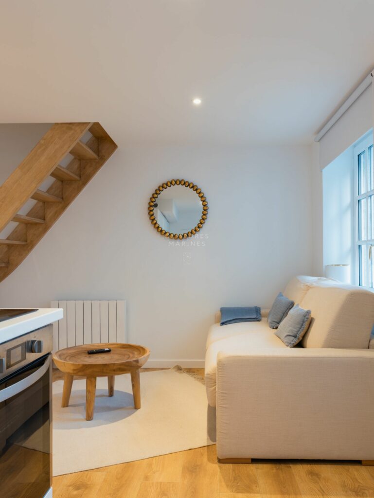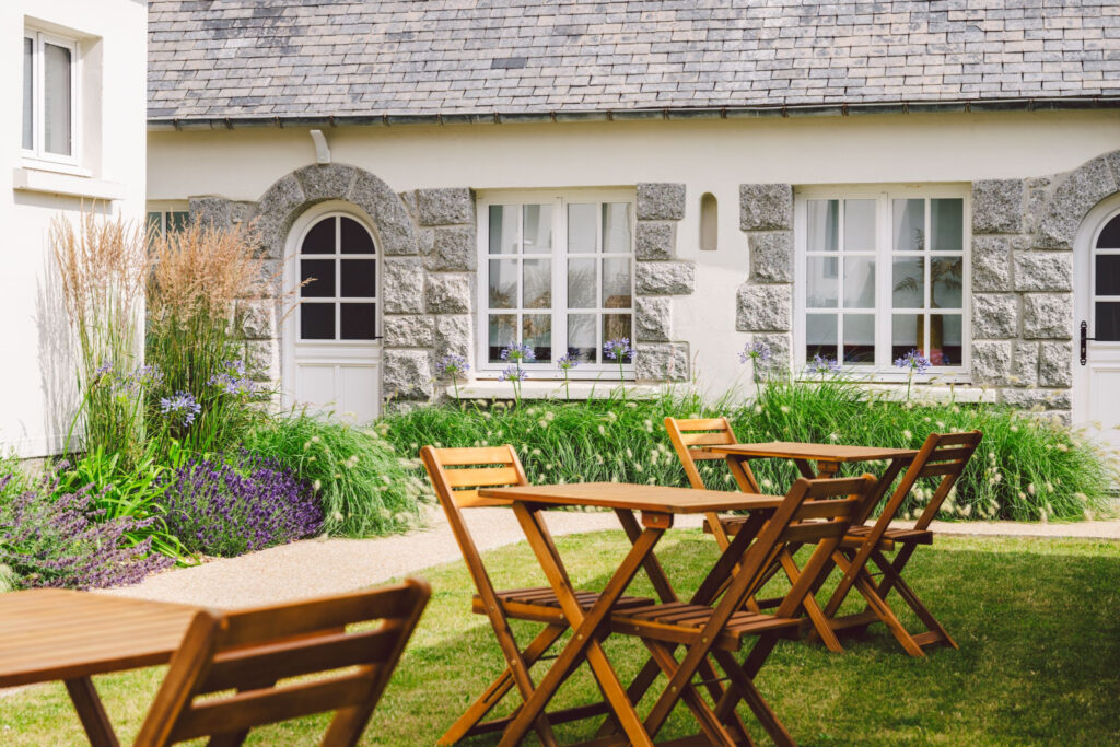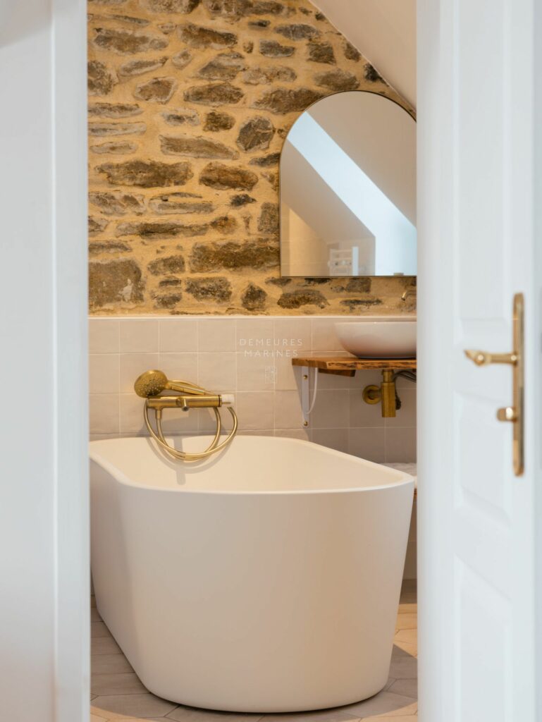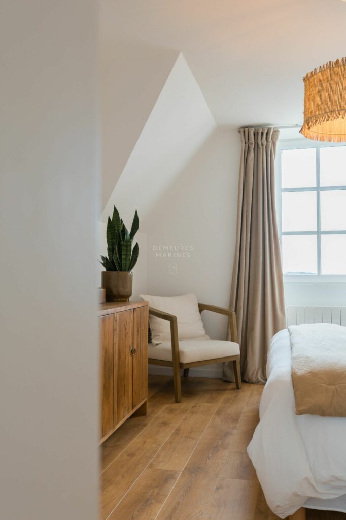 Le deuxième étage dessert deux nouvelles suites. L’une est dotée d’une salle de bains (baignoire et douche). L’autre a sa terrasse privative suspendue offrant la vue sur mer. D’ici, on respire l’âme de Roscoff.