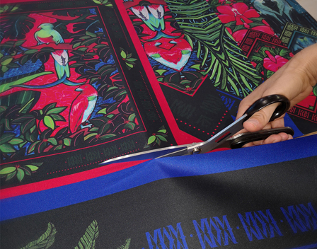 Nous avons fait le choix de travailler avec des artisans français confectionneurs de petites séries pour être en adéquation avec nos valeurs. C’est essentiel. Cet automne, nous avons lancé un nouvel accessoire, le foulard carré en laine mélangée soie. Quand le froid arrive, je trouve que nous avons tous besoin de nous envelopper dans un cocon de douceur. Nous avons mis du temps à trouver la matière idéale car l’impression sur le cachemire est très compliquée et je voulais une écharpe douce. La laine soie nous offre la douceur et un rendu des couleurs tout simplement exceptionnel.