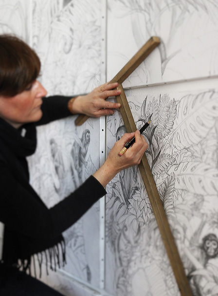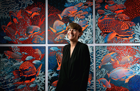 Nous proposons des collections de papiers peints panoramiques. La danse des poissons est proposée en plusieurs déclinaisons de couleurs. Extrait de l’un de mes tableaux, « La Danse » représente une nature sous-marine préservée avec ce récif corallien et ce banc de poissons majestueux qui s’éveille sous nos yeux. Notre prochain papier peint sera sur le thème de l’humanité et sera également décliné en plusieurs couleurs… suivront ensuite les fonds marins. A suivre ! Nous travaillons avec des professionnels (architectes, décorateurs…) pour des maisons, des écoles… et les particuliers dans toute la France. Nous fourmillons d’idées, c’est passionnant.