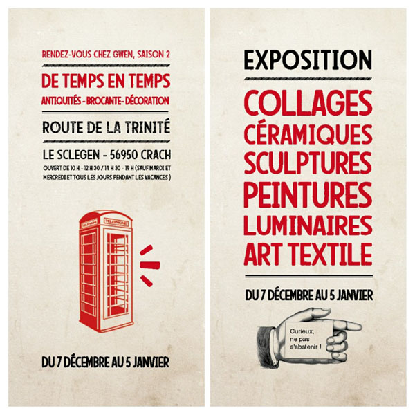 Et si on profitait de cette période de fête pour aller visiter la boutique brocante/antiquité « De temps en temps » à Crach ? On y va pour ces mille et un trésors mais aussi pour découvrir l’exposition qui s’y tient jusqu’au 5 janvier 2020.