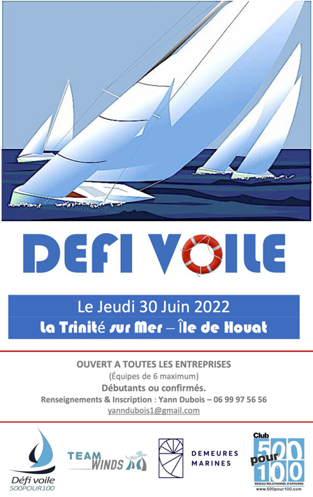 Organisé par le Club Réseau d’Affaires 500pour100, ce challenge/rallye voile inter-entreprises propose de rallier la Trinité-sur-Mer à Houat en monotypie « Grand Surprise » (Bateaux tous identiques).