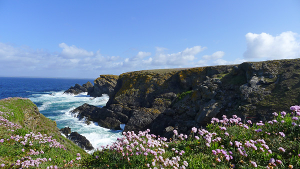 A l’extrémité ouest de l’île, la pointe de Pen Men, ses falaises abruptes et ses grandes étendues de fleurs.