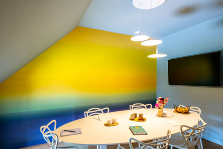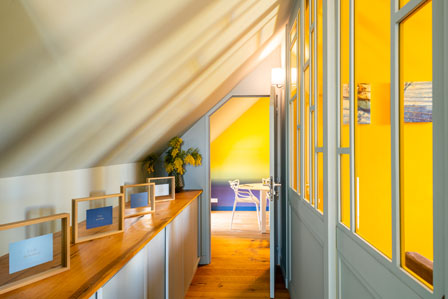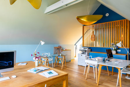 Entre terre et mer, nous profitons d’un lieu magnifique et d’un environnement de travail serein, totalement connecté à la nature. Entouré de champs et d’arbres centenaires, nous vous recevons ainsi en toute discrétion. Nous avons imaginé un lumineux espace de travail propice à la créativité de notre équipe.
